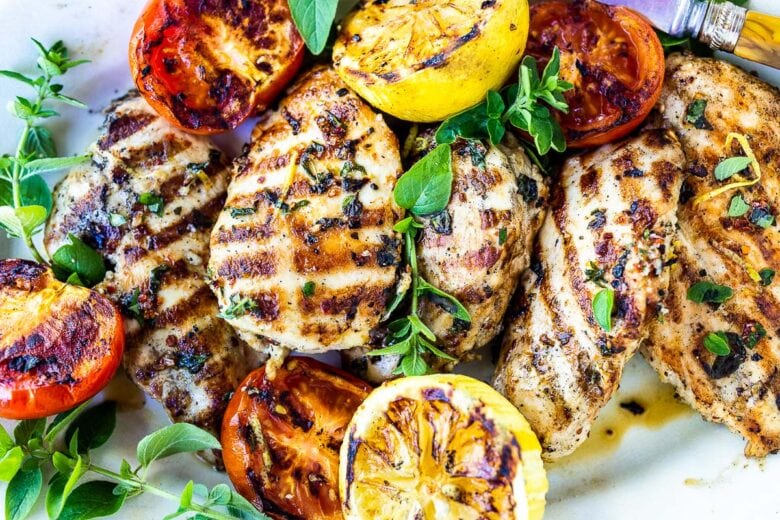 How to make Best Grilled Chicken with lemon, garlic and herbs that turns out juicy and flavorful every single time. Â Pair this with a salad, grilled veggies, or meal prep it for the coming week.