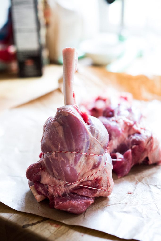 If new to braising meat- the internal temp must reach 190F and stay there a while for the tough fibers to break down and become tender. The longer you braise, the more tender it will get, as long as it’s in the braising liquid. In this case, I like the lamb to be fork-tender, but not so tender that it literally falls off the bone. It still tastes delicious, but then you’ll lose that lovely bone-in presentation.Â