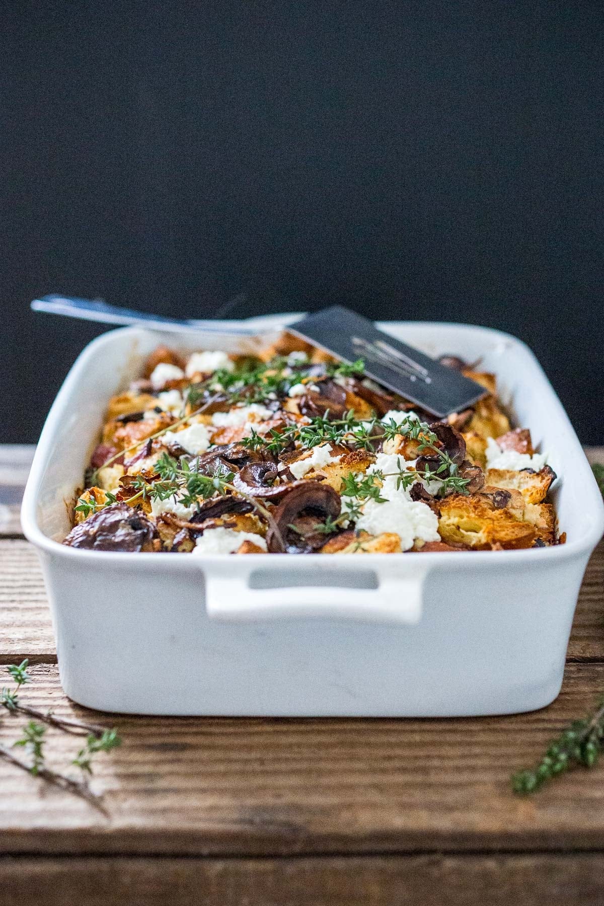 Breakfast Casserole (Breakfast Strata with Mushrooms & Goat Cheese)