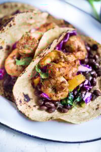 These Caribbean Shrimp Tacos with black beans and mango slaw are refreshing and bright! A fast, healthy 30-minute dinner.