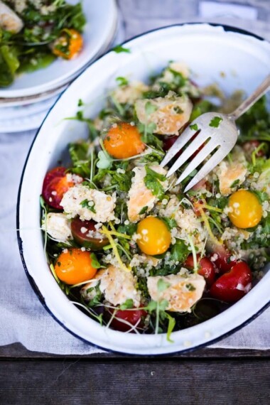 Grilled Salmon Tzatziki Bowl- a fast and delicious weeknight meal loaded up with healthy veggies! | www.feastingathome.com