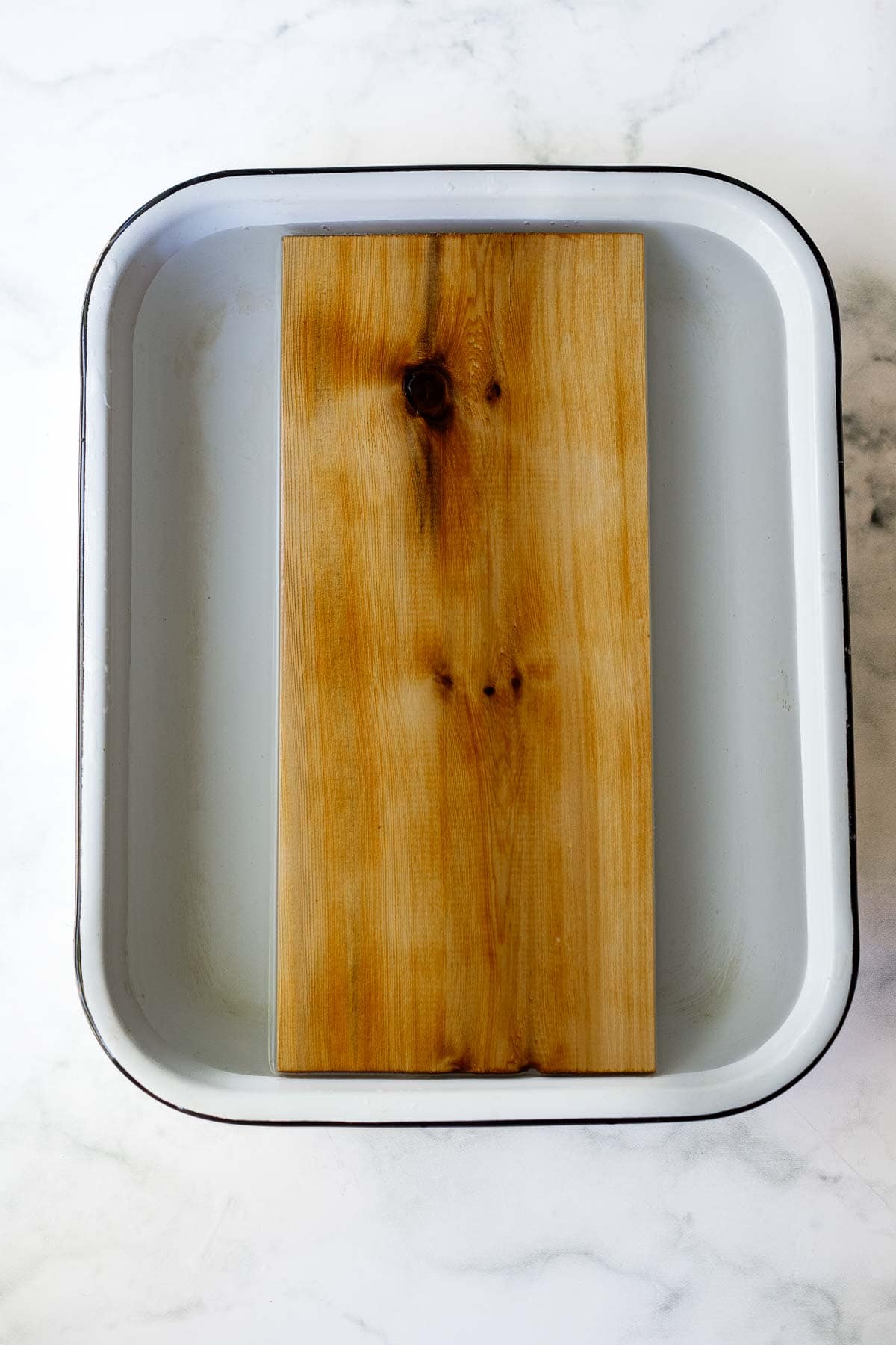 Step 1: Soak the cedar plank in water for 1-2 hours, then preheat a gas grill to medium-high heat. See recipe notes for a charcoal grill.