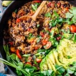 A quick weeknight skillet dinner – one-pan cheesy rice and black beans is ready in 30 minutes, made on the stovetop with the simplest ingredients. Vegan-adaptable, GF.
