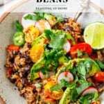 - Add meat! Instead of beans, stir in cooked ground meat, like our Homemade Mexican Chorizo.