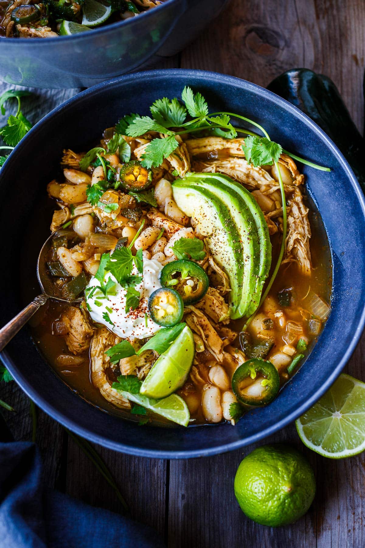 Learn the secret to making the best white chicken chili recipe with my chef's perfected tips and tricks! This Southwest favorite is hearty, healthy, and delicious – made with tender chicken, hearty white beans, fresh poblano chili peppers, cilantro, and lime.