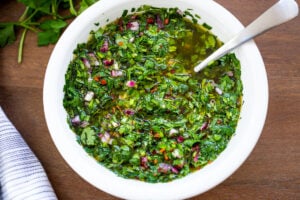 - If making Chimichurri ahead, cover the chimichurri sauce with a thin layer of oil when storing it in the fridge to keep it vibrant green.