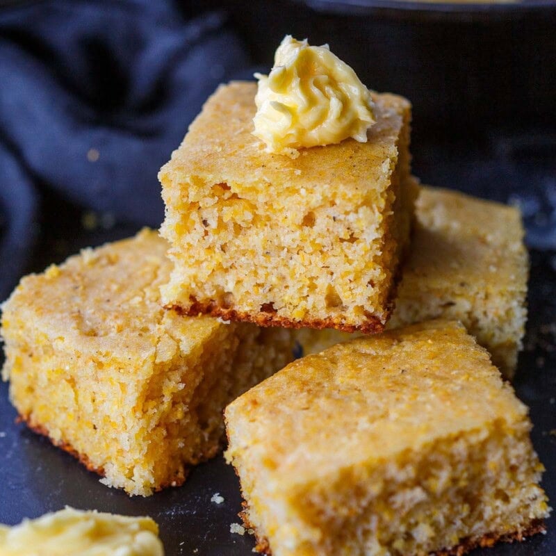 This classic cast-iron cornbread recipe is homey, delicious, and full of wholesome cornmeal flavor with an irresistible crusty edge. Â Bake it in a skillet or baking dish and it’s ready in just 35 minutes! Perfect for serving with soups, chili, and stews. Vegan-Adaptable (see recipe notes!).Â