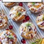 These festive Cranberry Orange Muffins are bursting with bright citrus flavor, juicy tart cranberries, and a hint of rosemary. Vegan and gluten-free, adapted from Boots Bakery.