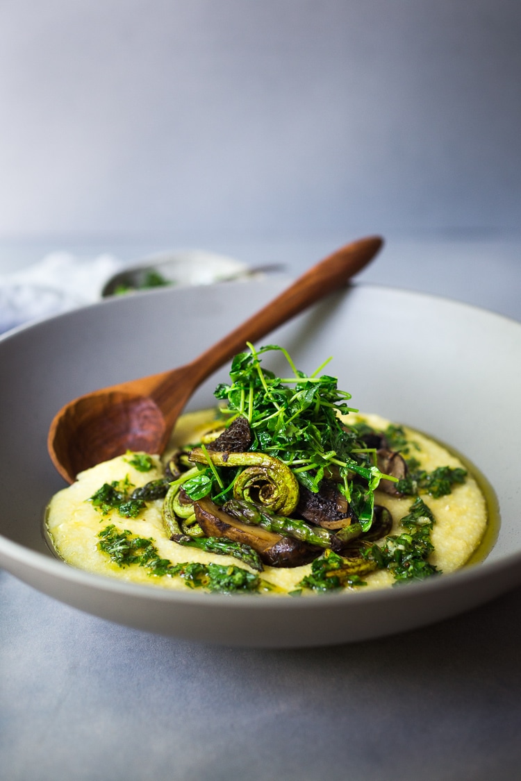 So there you have it, spring in a bowl! Dive in and enjoy this Creamy Polenta recipe!