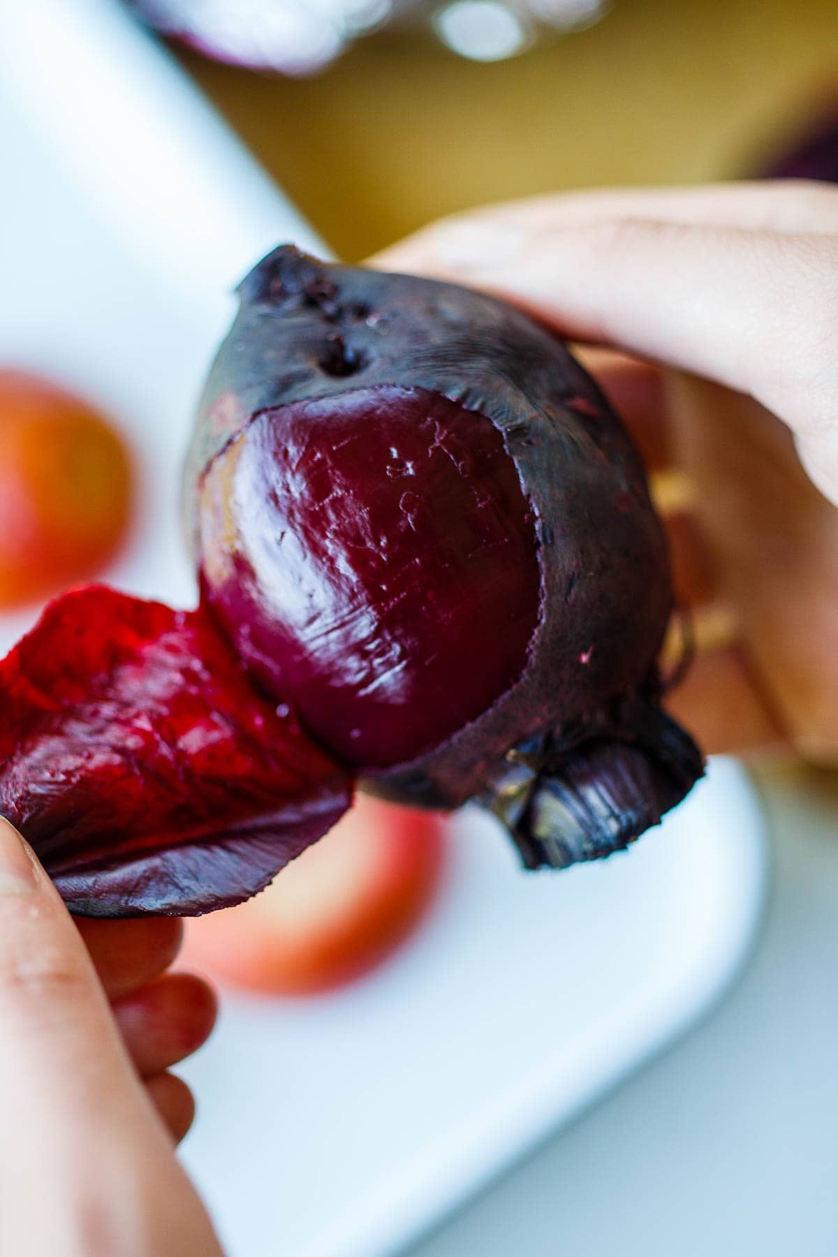 STEP TWO- When the beets cool down, the peels will slip off easily.