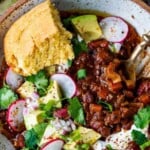 This vegan chili recipe is so rich and robust! Packed full of flavor, it’s wholesome and hearty with layers of complexity and depth.