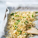 How to make cauliflower rice! A healthy, low-carb alternative to rice, that is easy to make and tastes amazing. Use a box grater or food processor then either roast it or saute it on the stove top.