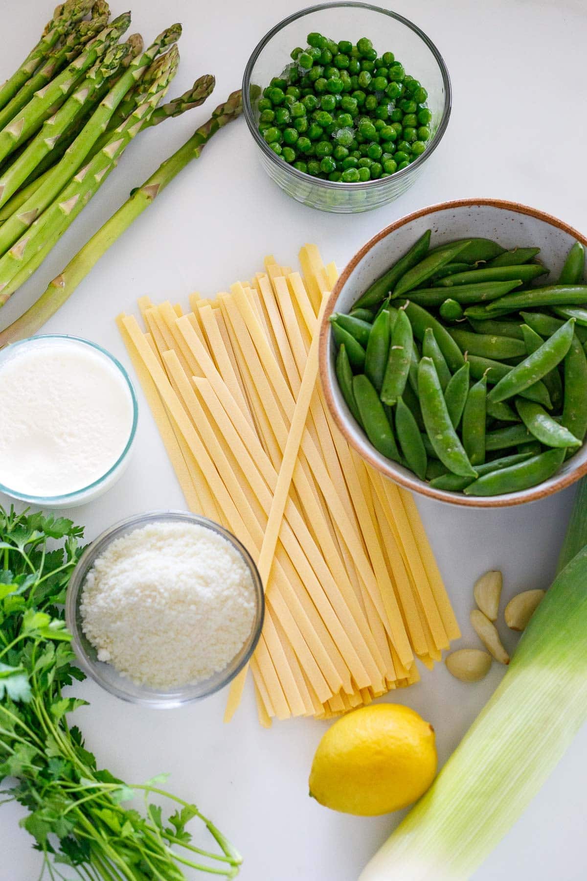 During the spring months, when asparagus is tender and fresh, I love making this pasta primavera recipe. It practically sings of spring! This recipe is creamy, yet wonderfully light, made with “true spring veggies” (asparagus, peas, and leeks), lemon zest, and fresh herbs. It comes together in under 30 minutes, and it is such a beautiful way to celebrate the season!