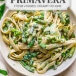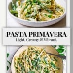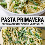 This light and creamy pasta primavera makes the perfect spring dinner! Tender pasta and spring vegetables are kissed with a light cream sauce infused with lemon and herbs.