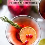 Festive Pomegranate Martini with Rosemary Simple Syrup …a refreshing and festive holiday cocktail made with vodka and Pomegranate Juice!