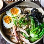Learn the secret to the best homemade chicken ramen! It features a rich, savory, unctuous chicken bone broth with roasted chicken, bok choy, shiitake mushrooms, and ramen noodles.