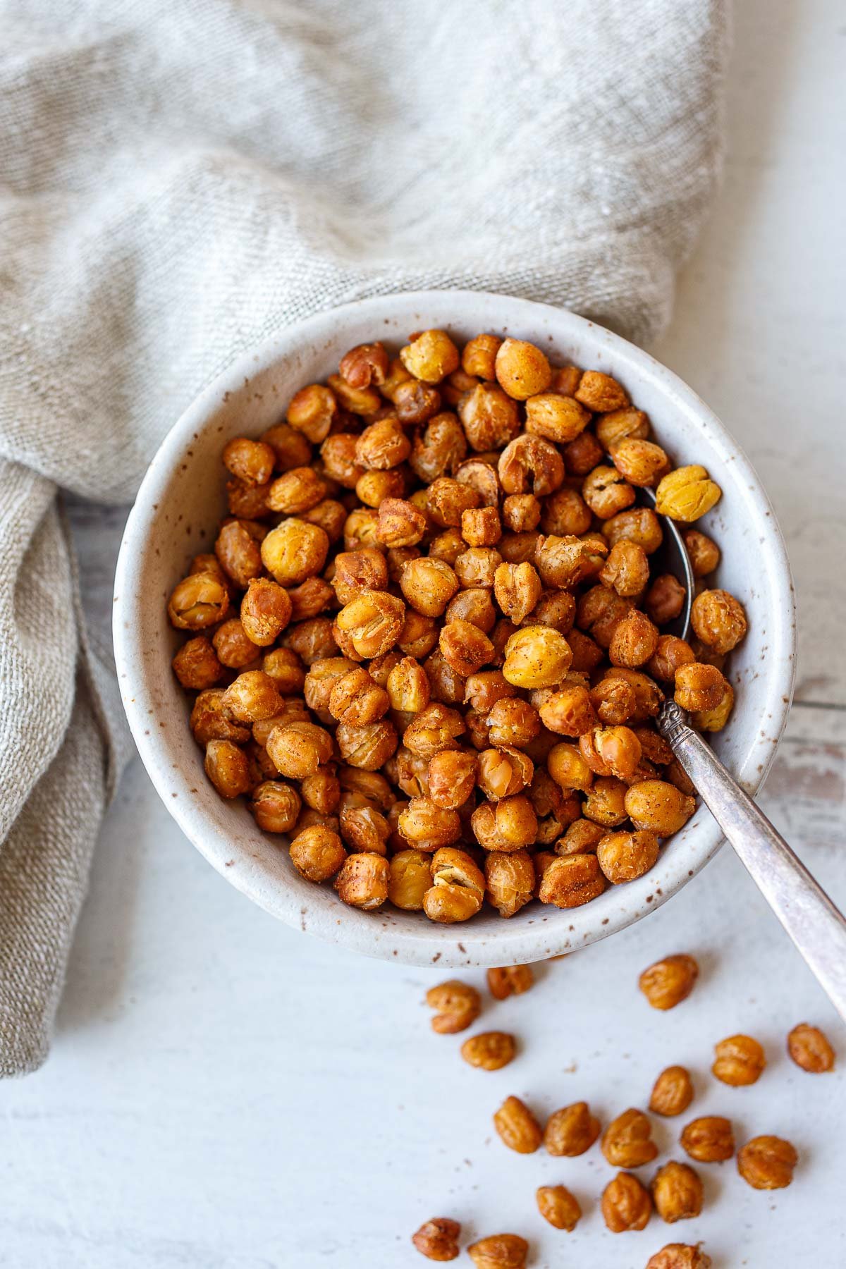 Storage: Once the chickpeas are cool, store them on the counter at room temperature, sealed in an airtight container for 2-3 days. The chickpeas are at their best when freshly baked. They'll crisp up again when reheated.