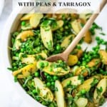 A spring-inspired salad with Spring peas, fingerling potatoes and a tarragon and mustard seed dressing- serve warm as a side, or chilled as a salad.