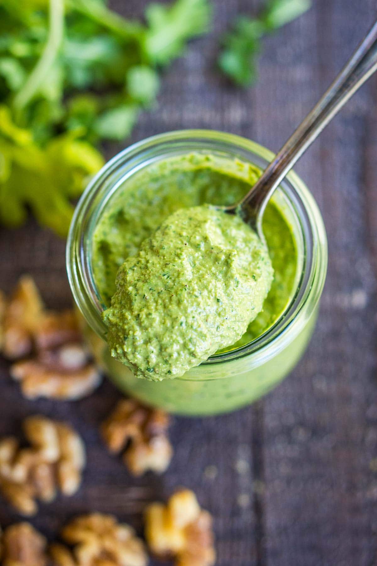 Trust me when I tell you you’ll want to lather this on everything. Add walnut pesto to wraps and sandwiches for a burst of flavor and richness (without cheese). Swirl it into pasta salad, soups, top your avocado toast with it, or spoon it over your roasted veggies, or even over simple baked chicken! You’ll find many uses!