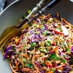This salad is SO YUMMY! I finally got a food processor so it comes together even quicker now. I love all of the fresh veggies and the peanut sauce is delicious. I enjoy this salad year round and it keeps very well in the fridge.