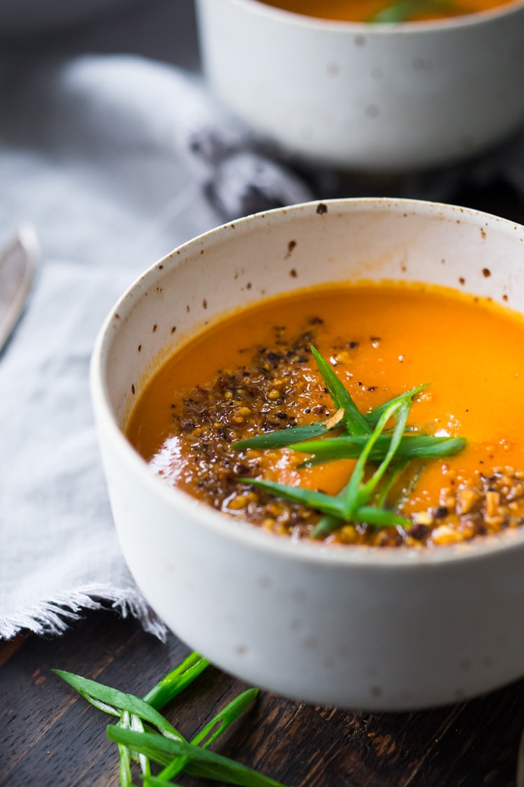 Fast and flavorful, this pantry meal comes together so quickly and easily! Give this creamy vegan Tomato Soup with Coconut and Ginger a try this week!