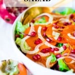 Persimmon Salad with shaved fennel, butter lettuce, pomegranate seeds, and a bright citrus dressing. Perfect for the holiday table! Vegan and Gluten-free.